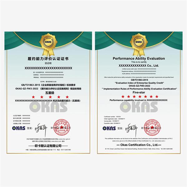 5. 认证颁发:如果企业通过认证,第三方机构将颁发履约能力达标测评认证证书。